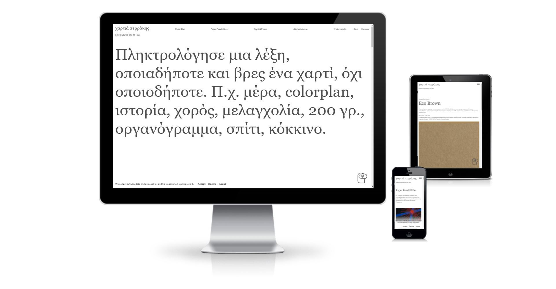 Η ανάπτυξη του νέου ιστότοπου της Perrakis Papers είχε ως στόχο τη δημιουργία μιας σύγχρονης ψηφιακής πλατφόρμας που θα αναδεικνύει τον κόσμο των ειδικών χαρτιών και θα λειτουργεί ως σημείο αναφοράς για σχεδιαστές, εκδότες, τυπογράφους και επαγγελματίες της δημιουργικής βιομηχανίας. Η εταιρεία, με ιστορία που ξεκινά από το 1887, δραστηριοποιείται στην επιμέλεια και διάθεση premium χαρτιών από όλο τον κόσμο, τα οποία χρησιμοποιούνται σε εκδόσεις, εταιρικές ταυτότητες και εφαρμογές συσκευασίας υψηλής αισθητικής.