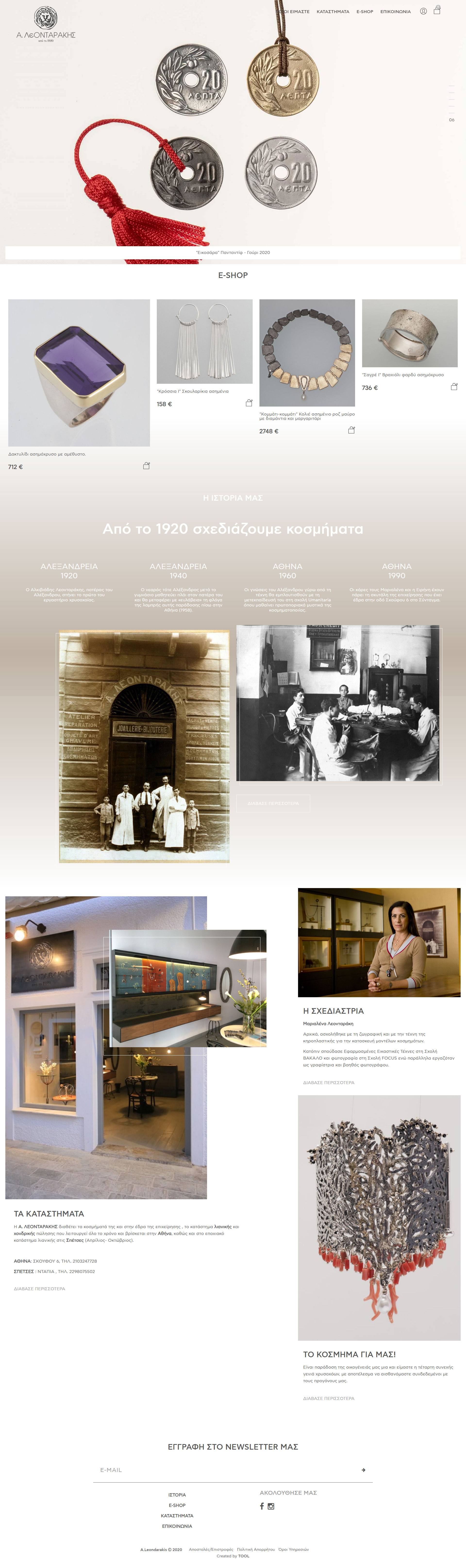 Η εταιρεία Α.ΛΕΟΝΤΑΡΑΚΗΣ ξεκίνησε να λειτουργεί το 1920 και να σχεδιάζει κοσμήματα με ιδιαίτερο design, τα οποία διαθέτει από 2 φυσικά καταστήματα. Η δημιουργία ενός ηλεκτρονικού καταστήματος ήταν απαραίτητη για την προβολή και διάθεση των προϊόντων σε ένα ευρύτερο κοινό.
